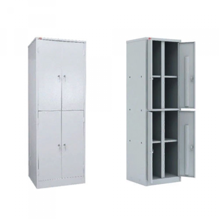 Модель ШАМ-24.О — металлический шкаф сборно-разборного типа для хранения бухгалтерских, офисных, архивных, других документов, ценных вещей, документов. Конструкция включает в себя две секции и четыре отсека с отдельными распашными дверцами, в каждом отсеке по одной полке.