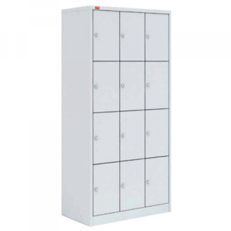 Металлический шкаф для вещей тройная секция, порошковая окраска металла, цвет серый.