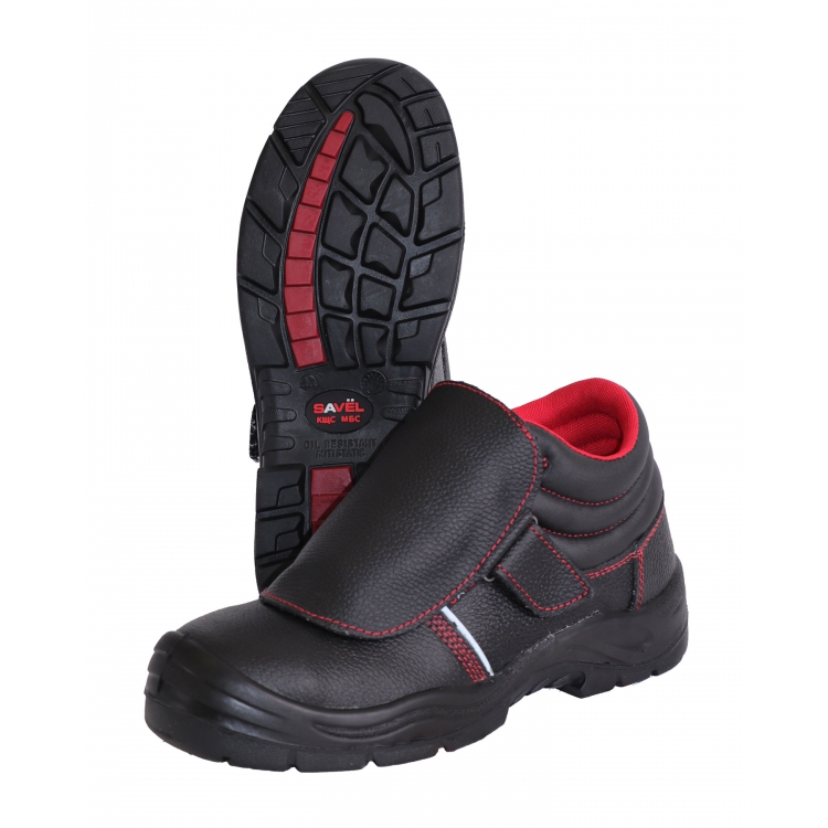 Ботинки Сварщик МП ПУ-Нитрил - профессиональная модель предназначенная для использования в условиях высоких температур сварщиками. Верх ботинок изготовлен из кожи черного цвета с защитным покрытием от общепроизводственных загрязнений, масел и бензинов.