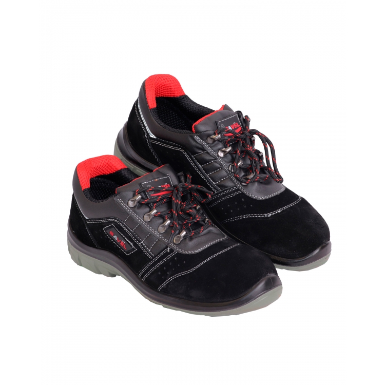 Полуботинки Универсал черная замша ПУ-ПУ - облегченная, универсальная модель защитной, демисезонной обуви. Верх изделия выполнен из натуральной черной замши в сочетании с отделочными элементами из искусственной кожи.