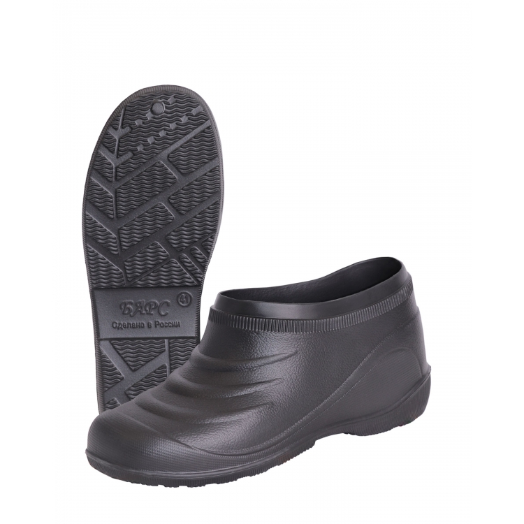 Материал изделия проявляет стойкость к развитию грибка и болезнетворных микроорганизмов. Галоши ЭВА черные проявляют защитные свойства в условиях воздействия водной среды и слабых агрессивных растворов.