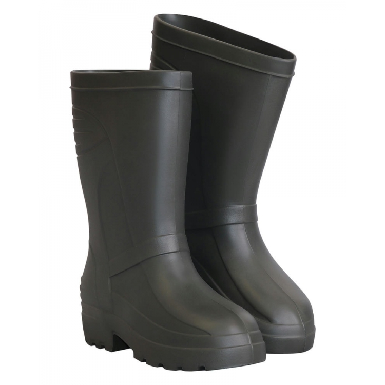 Основными характеристиками обуви из ЭВА являются: минимальный вес, полная водонепроницаемость, мягкость, высокая устойчивость к истиранию, а так же смягчение нагрузки на суставы при ходьбе