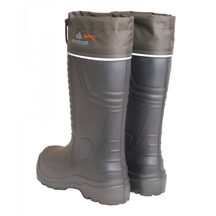 Сапоги ЭВА ПКП МБС КЩС предназначены для защиты от растворов кислот, щелочей, продуктов нефтепереработки, масел, бензинов. Верх изделия изготовлен из облегченного, гипоаллергенного, обладающего высокими показателями теплоёмкости материала ЭВА. Четырехслойный вкладыш разработан по технологии Nordman Thremo, состоит из фольгированного и мехового слоя. В качестве защиты от непреднамеренных ударных повреждений предусмотрен поликарбонатный подносок (МУН 200 Дж).