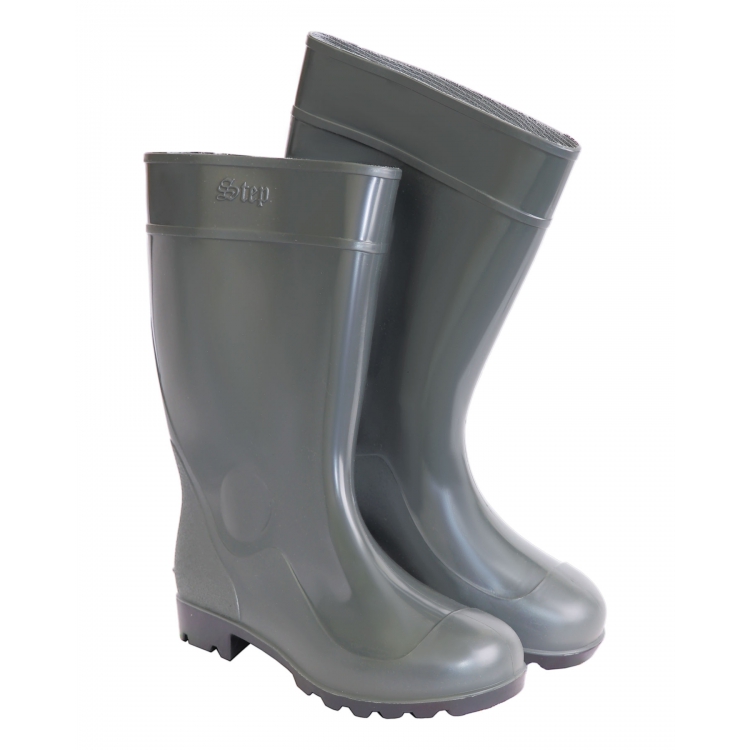 Анатомический подъем снижает нагрузку на опорно-двигательный аппарат при длительной носке. Пяточная область имеет абразивную поверхность, для увеличения прочности. Сапоги ПВХ позволяют защитить ноги от воды и различных загрязнений. Размерный ряд представлен в диапазоне 40-46.