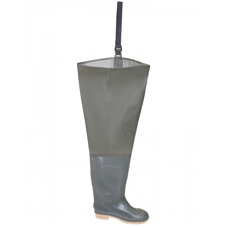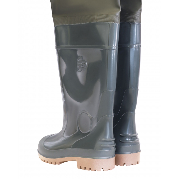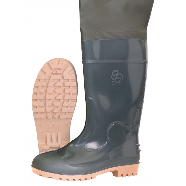 Сапоги ПВХ рыбацкие - надежная защитная обувь для любителей и ценителей рыбалки, походов, охоты. Сапоги выполнены из облегченного, гипоаллергенного, износостойкого ПВХ. Выше уровня стандартных сапог герметично приварено голенище из винитола - плотного, мягкого эластичного материала, выполненного из трикотажного полотна с покрытием ПВХ. Такое решение позволяет надежно и полностью защитить ноги от нежелательного намокания. Крепление сапог осуществляется посредством регулируемых лямок, которые крепятся за поясной ремень.