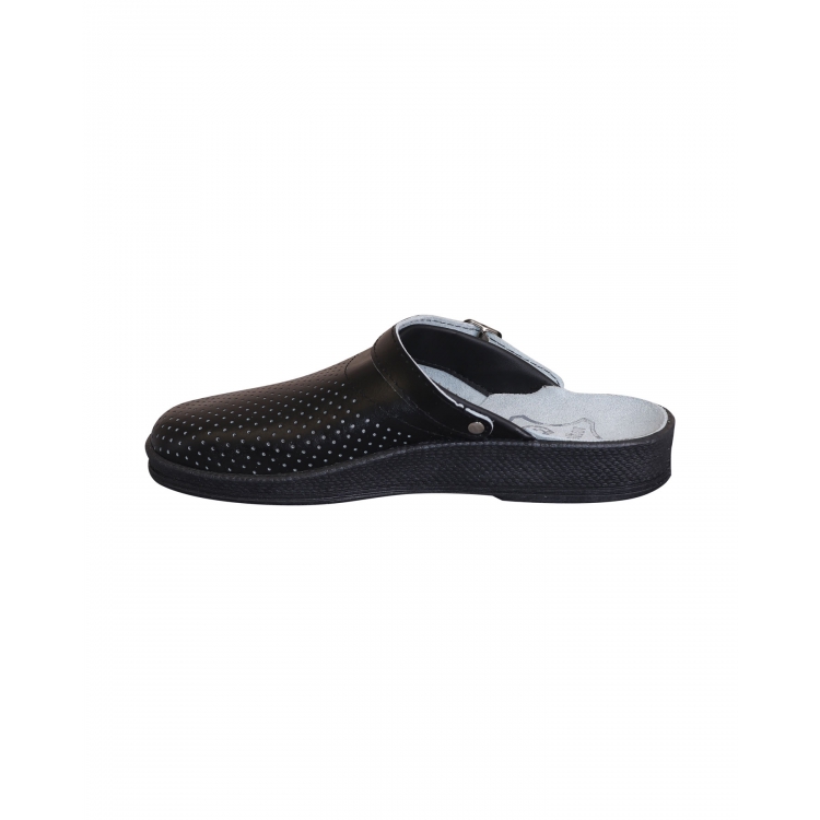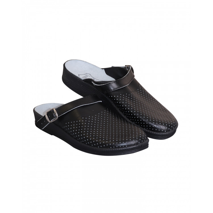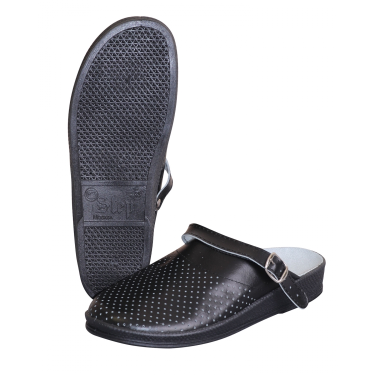 Сабо женские чёрные - лаконичная модель женской облегченной обуви как для работы, так и для ежедневной эксплуатации. Внешняя поверхность, стелька и изнанка сабо выполнены из натуральной кожи, что гарантирует долговечность изделия, а также комфорт при длительной носке.