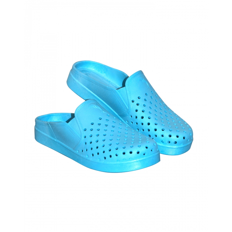 Сабо ПВХ с перфорацией женские выполнены из облегченного вспененного ПВХ голубого цвета. На поверхности сабо нанесены перфорированные отверстия для поддержания оптимального микроклимата и обеспечения комфортного теплообмена.