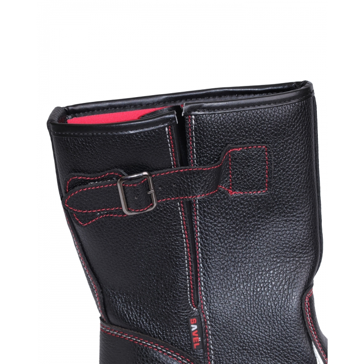 Светоотражающие полосы(СОП) увеличивают заметность в темное время суток. Размерный ряд от 36 до 47 размера. Регулировка по объему голени осуществляется затяжкой ремешком с пряжкой в верхней части голенища. Контрастные швы красного цвета -это не только яркий декор, но и функциональное закрепление составных частей.