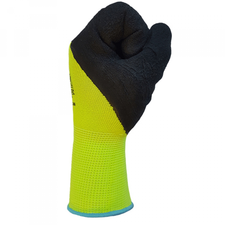 - Латексное покрытие нанесено на область ладони и пальцев, включая костяшки. Из этого следует, что защита от грязи осуществляется еще лучше, а работа с мокрыми предметами не доставляет неудобств работающему человеку.