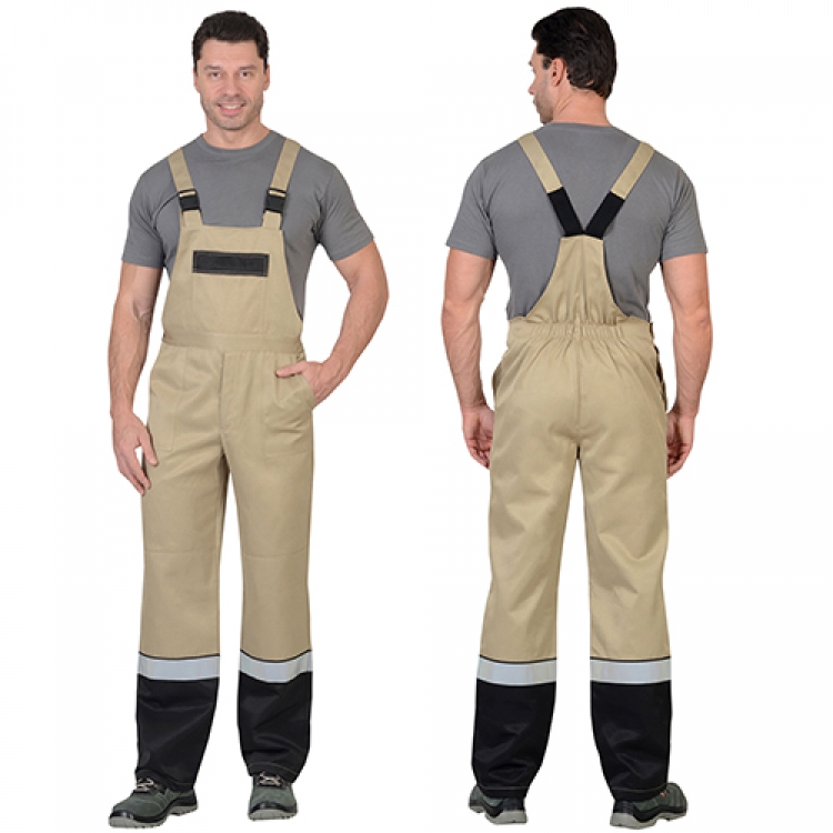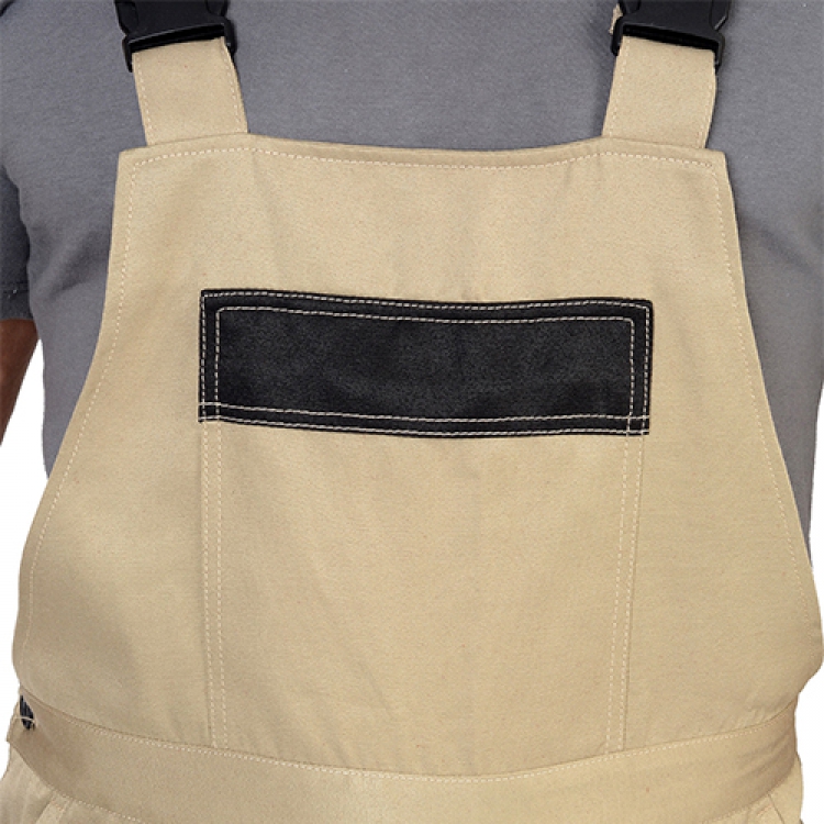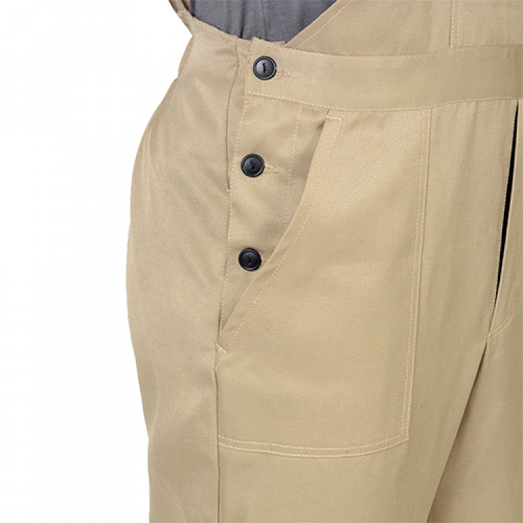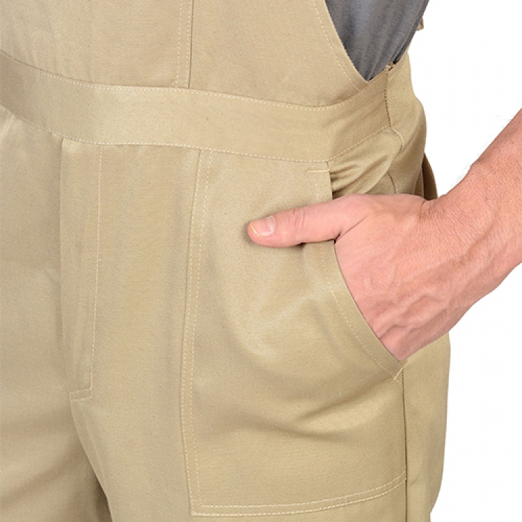 - Полукомбинезон на регулируемых бретелях, с утягивающей эластичной тесьмой на талии подойдет людям практически любой комплекции и роста. Гульфик для удобства и быстроты закрытия застегивается на молнию, а в боковом шве предусмотрены три пуговицы. Открытые накладные карманы на передних половинках и в области груди придают комбинезону эргономичность.