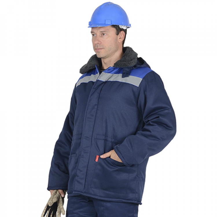 - Куртка Бригадир выполнена в прямом силуэте удлиненного типа с отложным меховым воротником и отстегивающимся капюшоном. Утеплителем служит трехслойный синтепон плотностью 150 г/кв.м. Для обозначения сигнальной видимости на изделии предусмотрены светоотражающие полосы шириной 5 см.