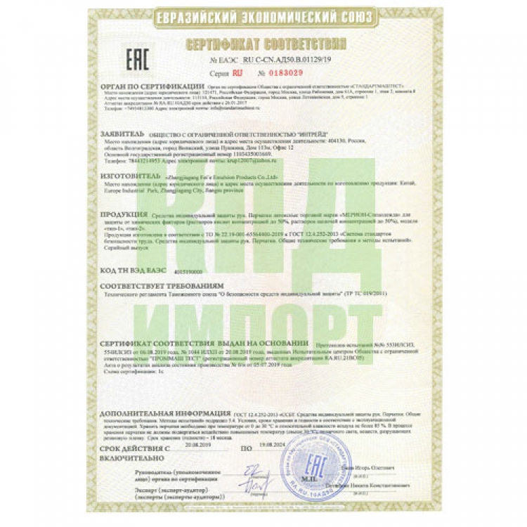 Перчатки изготавливаются в соответствии с требованием ТР ТС 019/2011.