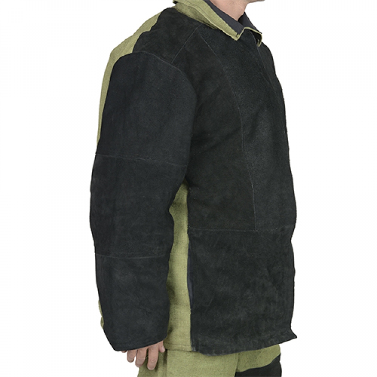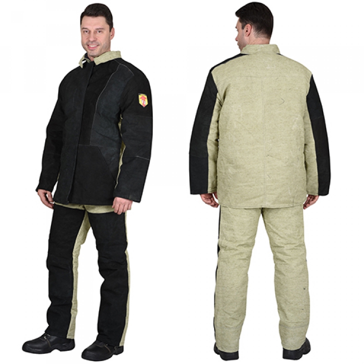 - Мужской зимний костюм сварщика защитит от искр, брызг раскаленно металла, теплового излучения и других производственных повреждений и загрязнений. Основная верхняя ткань скомбинирована натуральным спилком КРС и брезентом, состоящим из 40% хлопка и 60% льна. Подкладка изготовлена из натурального хлопка.