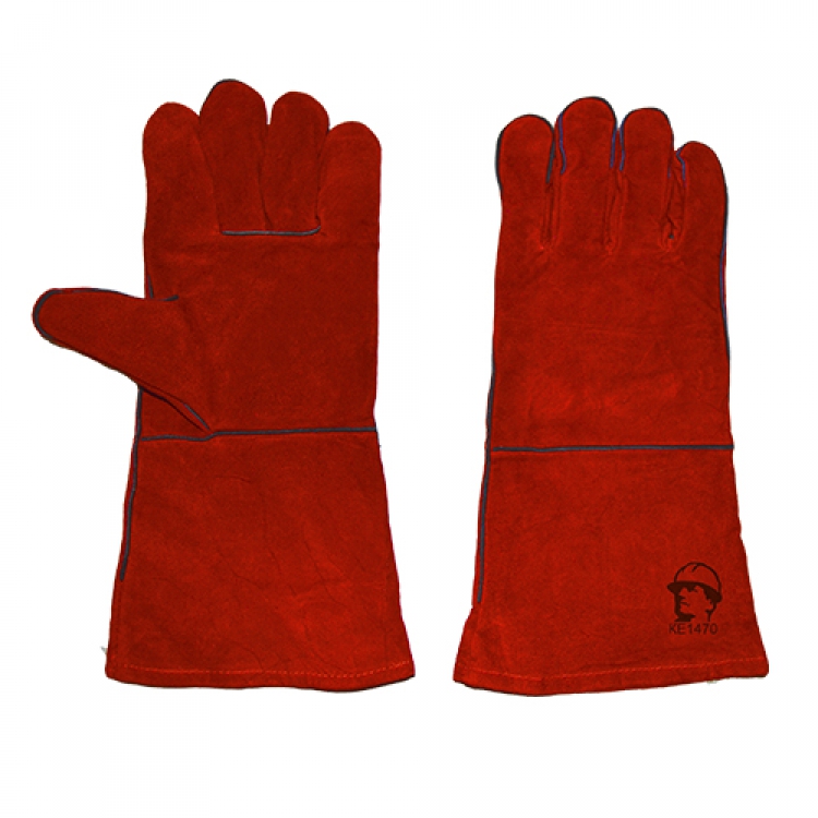 - Верхнюю основу перчаток составляет натуральный спилок толщиной 1,1-1,2 мм. Яркий красный цвет позволяет увеличить и сконцентрировать внимание при производственных процессах. Натуральный спилок получается путем шерфования кожи КРС и обладает достойными эксплуатационными характеристиками — он устойчив к высоким температурам, открытому пламени, брызгам раскаленного металла и т.д.