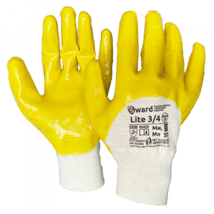 - Плотные перчатки Gward Lite покрыты на 3/4 премиальным нитриловым слоем. Их основа - популярное хлопковое трикотажное полотно, которое является гипоаллергенным, доступным по стоимости, простым в уходе и комфортным для руки.