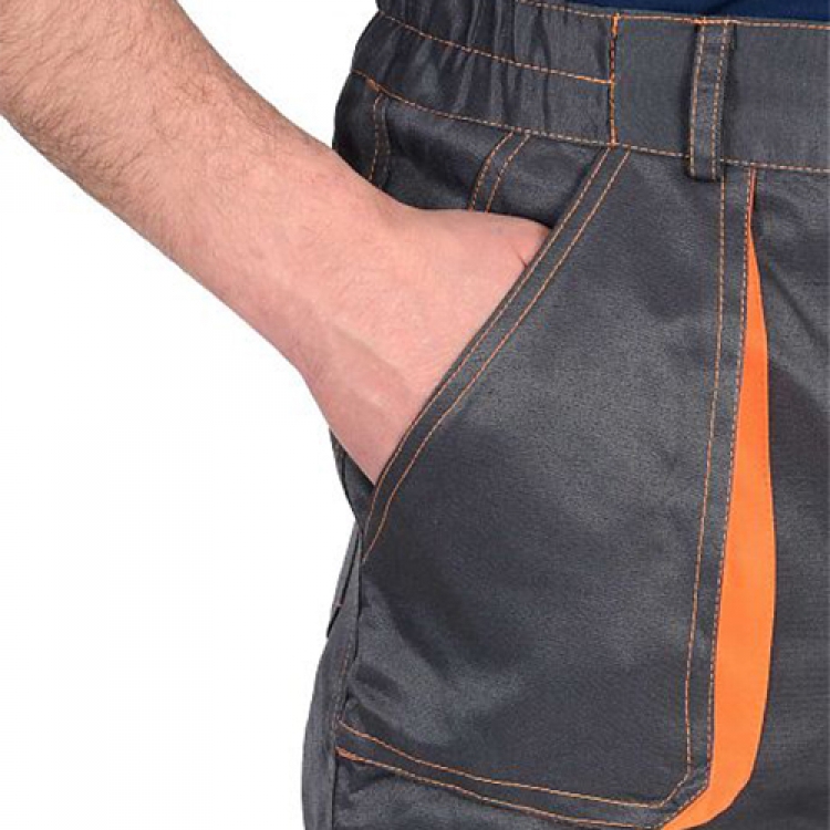 - Брюки Crown имеют прямой силуэт. Втачной пояс с резинкой по бокам и гульфик застегиваются на пуговицы. На коленной области вшиты дополнительные усилительные накладки. Большое количество карманов делает брюки рабочие серые эргономичными, а оранжевые их части придают яркости и заметности. Швы контрастного цвета завершают эстетичный вид.