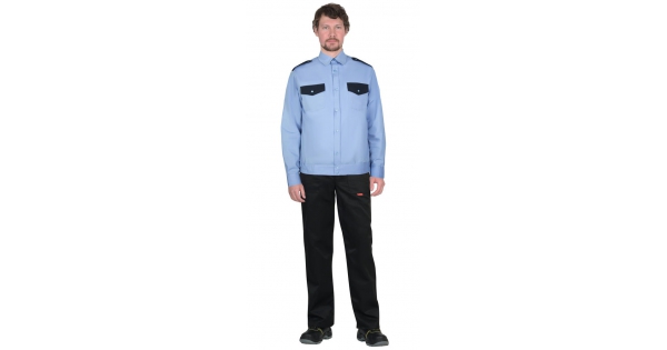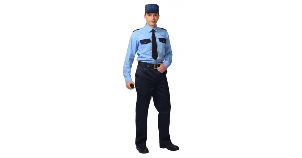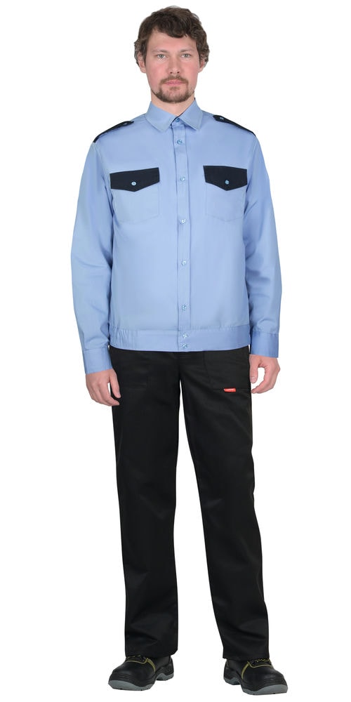 Рубашка Охранника, длинный рукав, голубая с темно-синим