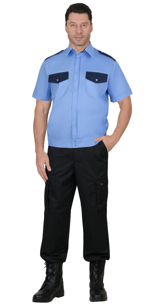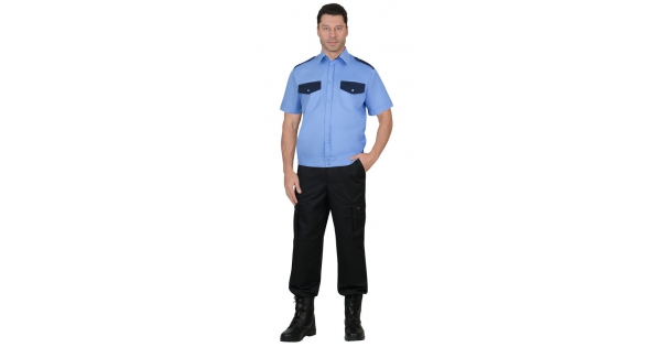 Рубашка Охранника, короткий рукав, голубая с темно-синим