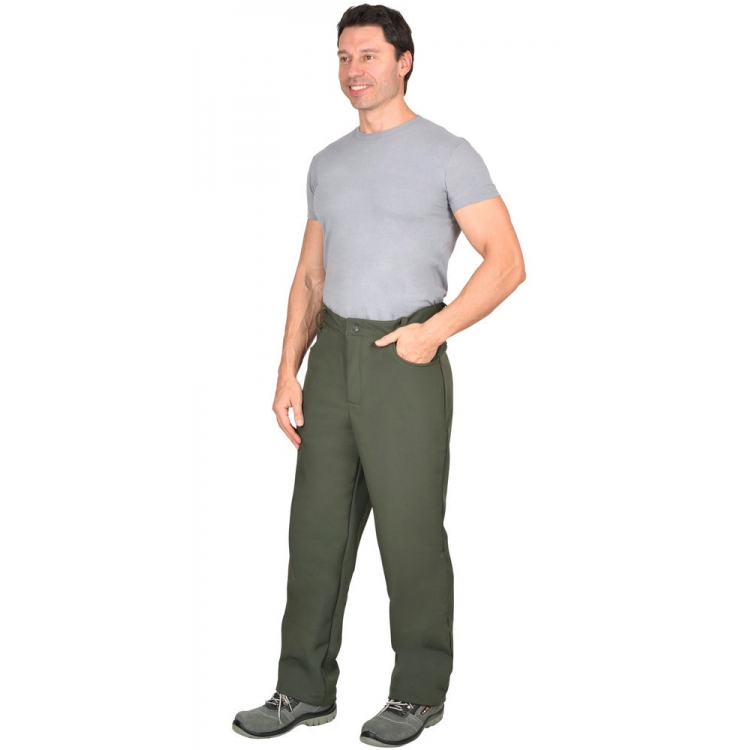 Брюки прямые, на притачном поясе, с застёжкой спереди гульфик на тесьму «молния». Брюки с боковыми внутренними карманами фигурным входом, на задних половинках с отрезной кокеткой. Ткань верха - «Софтшелл» состав: 100% п/э.; пл. 350 г/м ГОСТ 25295-2003