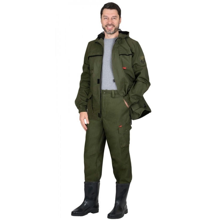Куртка удлиненная прямого силуэта, с центральной застёжкой на молнию, притачным регулирующимся по высоте и объёму капюшоном с противомоскитной сеткой, отлетными планками переда и спинки защищающими от проникновения насекомых, нагрудными накладными карманами, нижними накладными карманами с клапанами на липучке. Низ рукавов с манжетами на резинке.