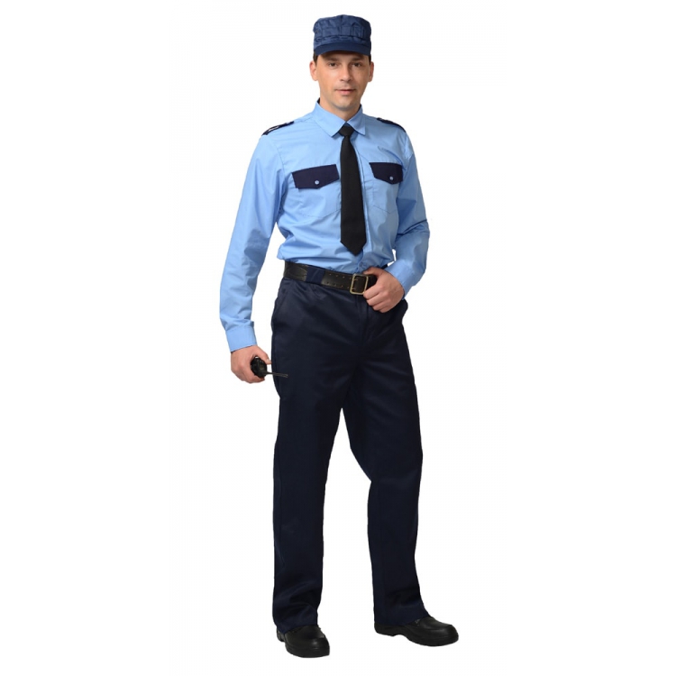 Рубашка Охранника, длинный рукав, голубая с темно-синим