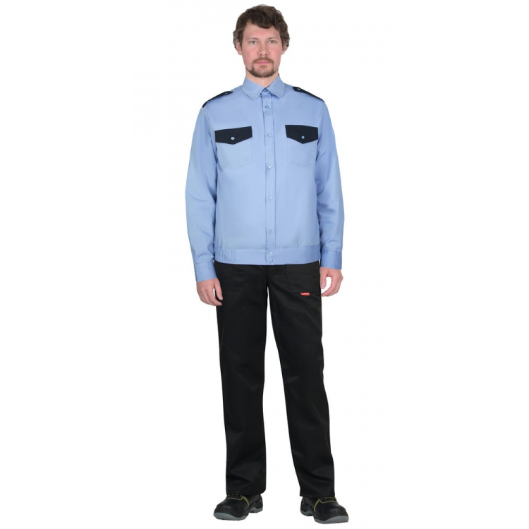 Рубашка Охранника на резинке, длинный рукав, голубая с темно-синим