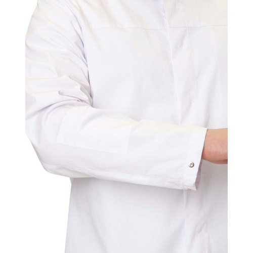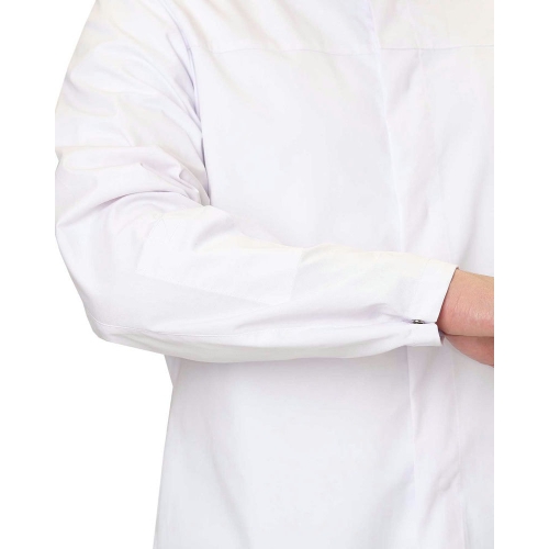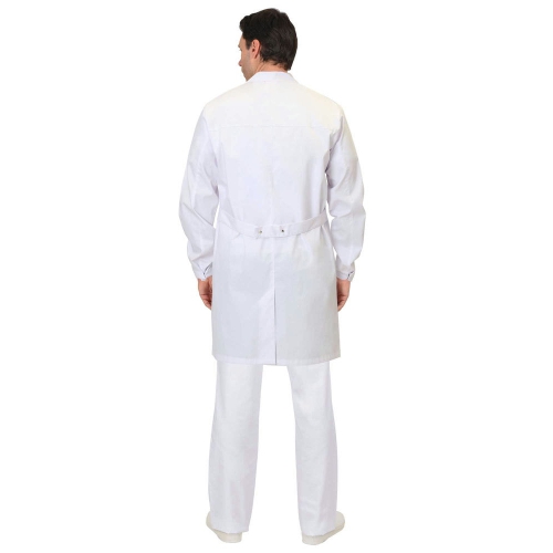 Халат для пищевого производства отвечает требованиям НАССР (ХАССП). Гигиеническая безопасность костюма достигается за счет внутренних карманов и скрытых застежек.