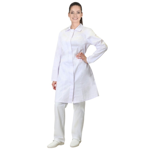 Халат для пищевого производства отвечает требованиям НАССР (ХАССП). Гигиеническая безопасность костюма достигается за счет внутренних карманов и скрытых застежек.