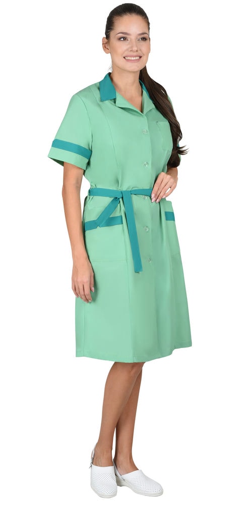 - Халаты распространены в клининговых компаниях, у врачей и медсестер, кладовщиков, работников магазинов, отелей, ресторанов и т.д. Приталенные или прямые силуэты обеспечивают надежную посадку на теле человека. Для лучшего прилегания некоторые халаты оснащаются поясами, фиксирующимися в шлевках. Эргономику повышают открытые карманы.