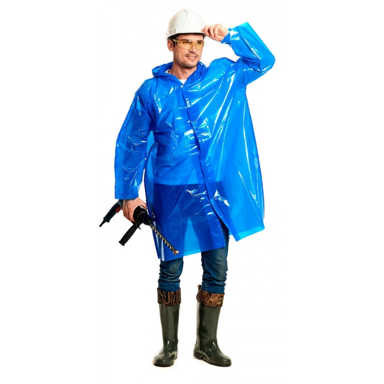 Плащ-дождевик СИРИУС-ПРОФИ на липучке ПВД 45 мкр. пропаянные швы, синий