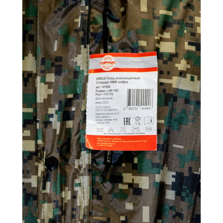 Плащ влагозащитный ПВХ SIRIUS Стандарт КМФ цифра.