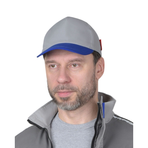 Кепка-бейсболка светло-серая с васильковым
