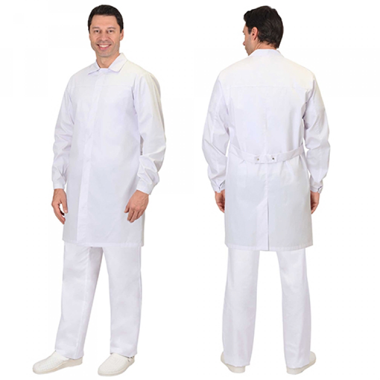 - Мужской халат Сицилия выполнен в универсальном белом цвете. Прямой силуэт является классическим и позволяет удобно садиться на любой фигуре. Данная модель защитной одежды отвечает требованиям НАССР и соответствует межгосударственному стандарту ГОСТ 12.4.132-83, на что имеются подтверждающие сертификаты.
