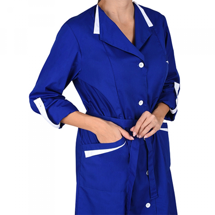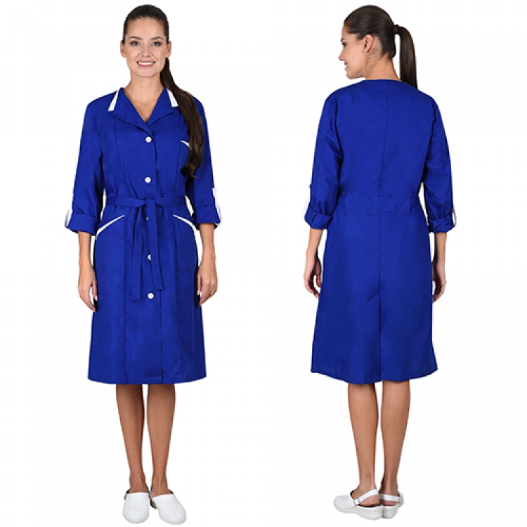 - Женский халат Комфорт разработан опытными специалистами ГК Сириус для работниц сферы обслуживания и других видов деятельности, соответствует межгосударственному стандарту ГОСТ 12.4.131-83 и выполняет все необходимые защитные функции. Основная смесовая ткань состоит из 65% полиэстера и 35% хлопка и имеет плотность 115 г/кв.м. Такой материал является плотным и износостойким, но при этом обладает легким весом и хорошим воздухообменом, поэтому прекрасно подходит для работы в летнее время года в помещениях и даже на открытом воздухе.