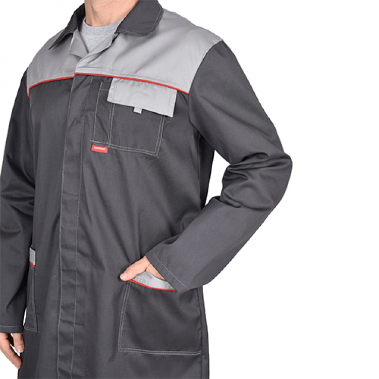 - Мужской халат Фаворит изготовлен из смесовой ткани, состоящей из 65% полиэстера и 35% хлопка. Плотность материала 210 г/кв.м позволяет выдерживать большие нагрузки, быть устойчивым к износу, разрывам и истиранию. Такая спецодежда надежно защитит от механических повреждений и загрязнений в помещениях или на открытом воздухе. Халат неприхотлив в уходе, не провоцирует излишнее потоотделение, быстро высыхает в случае намокания, не сковывает движений и является комфортным и удобным.