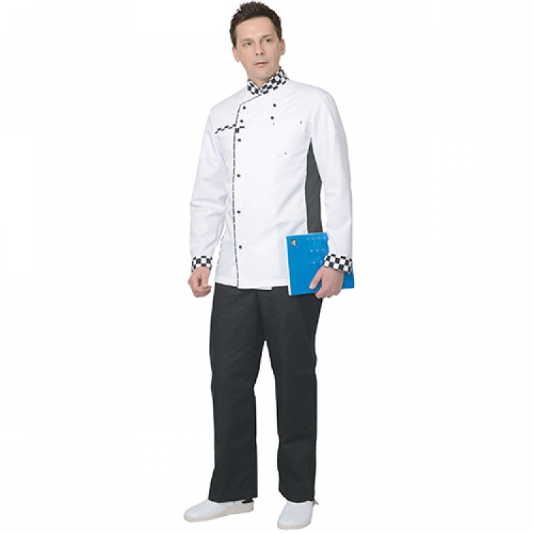 • Мужской китель Шеф от компании Сириус изготовлен специально для работников пищевой промышленности и сфер обслуживания. Изделие соответствует межгосударственному стандарту ГОСТ 9897-88 и имеет подтверждающие сертификаты.