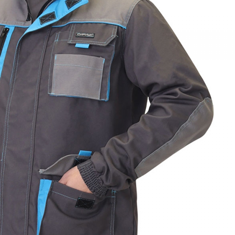 • Костюм от ГК Сириус Двин состоит из удлиненной куртки и полукомбинезона. Смесовая ткань из 65% полиэстера и 35% хлопка практична и износоустойчива, она прекрасно подходит для изготовления летней спецодежды. Добавление натуральных волокон позволяет одежде дышать и не провоцировать излишнее потоотделение, а также обладать мягкостью и комфортом. Синтетические волокна продлевают срок службы вещей, добавляют прочности и устойчивости к механическим повреждениям.