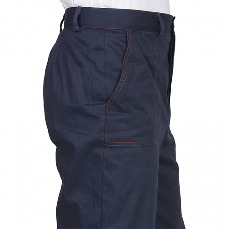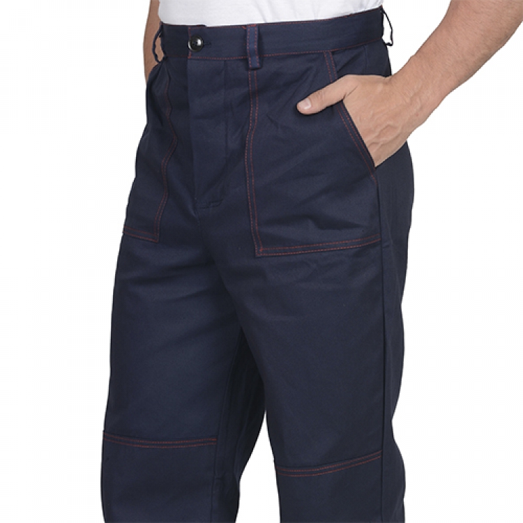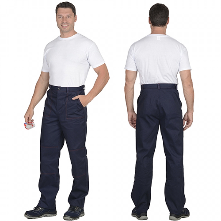 - Брюки с застежками в виде пуговиц по гульфику и притачному поясу имеют прямой силуэт. Для фиксации ремня пришиты шлевки. Накладные карманы с косым входом обладают удобной глубиной и доступом. Наколенники дополнительно защищают от травм и повреждений.