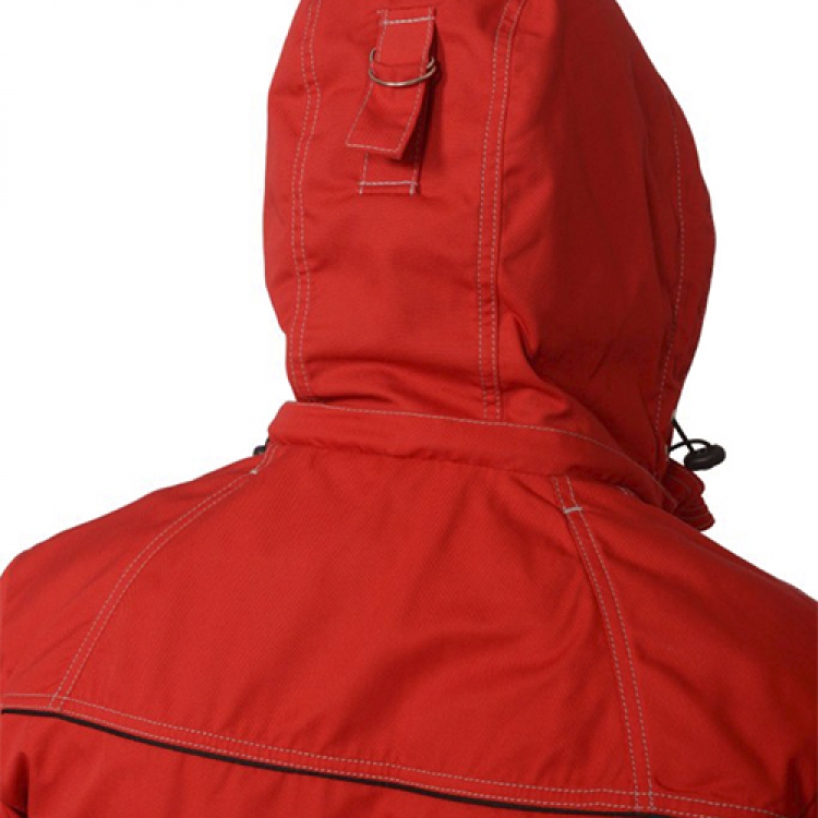 • Красная удлиненная куртка Мельбурн (арт. 01508) застегивается на тракторную молнию, располагающуюся поверх внутренней ветрозащитной планки. Отстегивающийся капюшон имеет утягивающую эластичную тесьму и крепится при помощи молнии к воротнику-стойке.