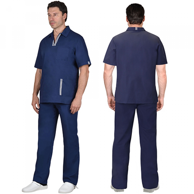 • Лаконичный мужской костюм Виктор изготовлен из смесовой темно-синей ткани. Основной материал состоит из 65% полиэстера и 35% хлопка и имеет плотность 115 г/кв.м. Оптимальное сочетание искусственных и натуральных волокон обеспечивает изделиям высокие эксплуатационные характеристики и долгий срок службы. Комплект соответствует межгосударственному стандарту ГОСТ 25295-2003 и ТР ТС 017/2011.