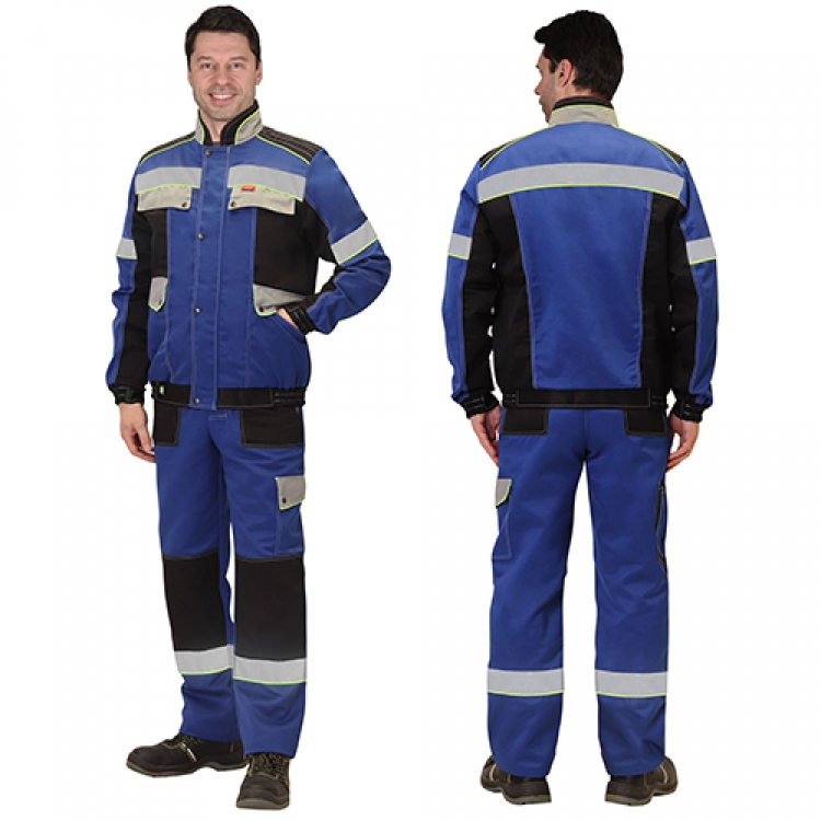 - На куртке и полукомбинезоне имеются светоотражающие полосы шириной 5 см для обозначения сигнальной видимости. Для удобства и повышения эргономичности комплект оснащен большим количеством карманов, некоторые из которых имеют закрытие клапанами с кнопками.