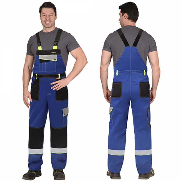 - Полукомбинезон регулируется по длине бретелями со вставкой эластичной ленты и фаст-пряжками. На спинке талия утягивается резинкой. Шлевки контрастного цвета выполняют функцию фиксации ремня. Наколенники способствуют дополнительной защите ног.