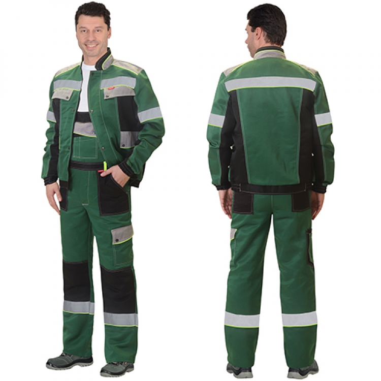- Костюм Полином зеленого цвета подойдет для выполнения действий работниками различных сфер в теплое время года и межсезонье на открытом воздухе и в помещениях. Большое количество карманов с разными вариантами закрывания обеспечивает удобство и эргономичность спецодежде. Светоотражающие полосы шириной 5 см увеличивают сигнальную видимость при неблагоприятных погодных условиях и в темное время суток.