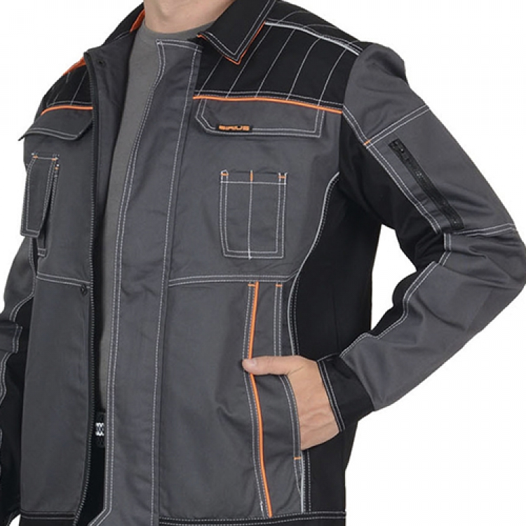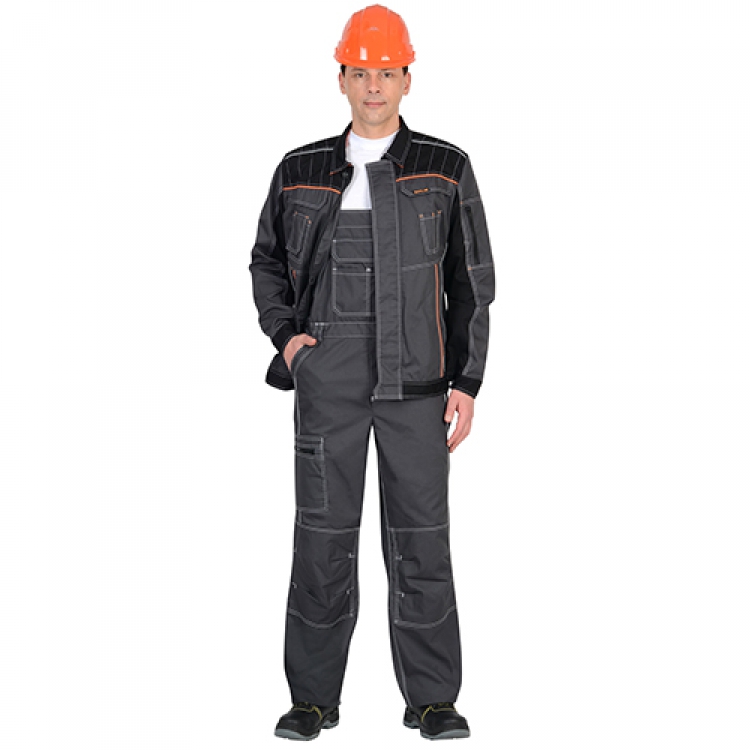 Костюм Престиж серый с оранжевой отделкой, куртка, полукомбинезон