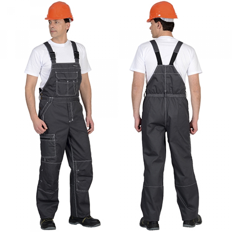 - Прямой полукомбинезон (арт. 04196) регулируется по длине бретелями с фаст-пряжками и вставкой эластичной ленты. На спинке утяжку выполняет резинка. Наколенники усиливают защитную функцию. По поясу пришиты шлевки для фиксации ремня. Гульфик застегивается на молнию, а в боковом шве предусмотрены пуговицы с петлями.