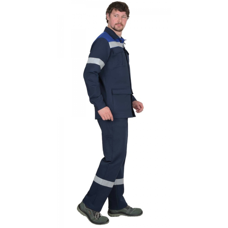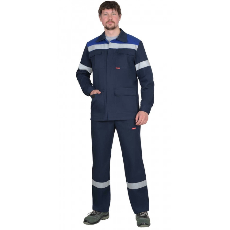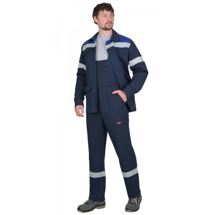 Костюм летний, состоит из куртки и полукомбинезона. В костюме предусмотрены светоотражающие элементы, что обеспечивает видимость рабочего при любом освещении.
