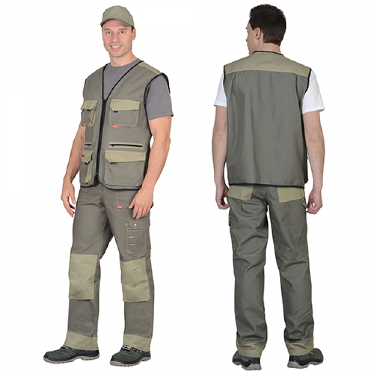 • Костюм Вест-Ворк, состоящий из брюк и жилета, имеет практичный оливковый цвет, выгодно выделяющийся на фоне обычной спецодежды. Смесовая ткань из 65% полиэстера и 35% хлопка прекрасно подходит для работ в теплое время года, является легкой и комфортной, а плотность 270 г/кв.м делает комплект прочным и устойчивым к механическим повреждениям.
