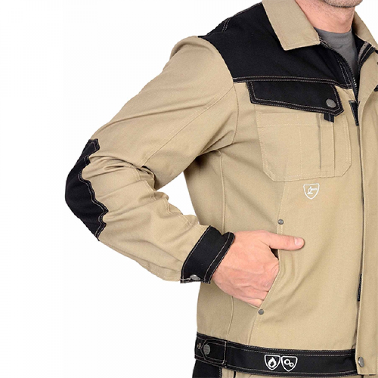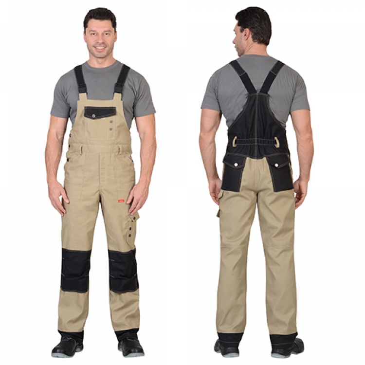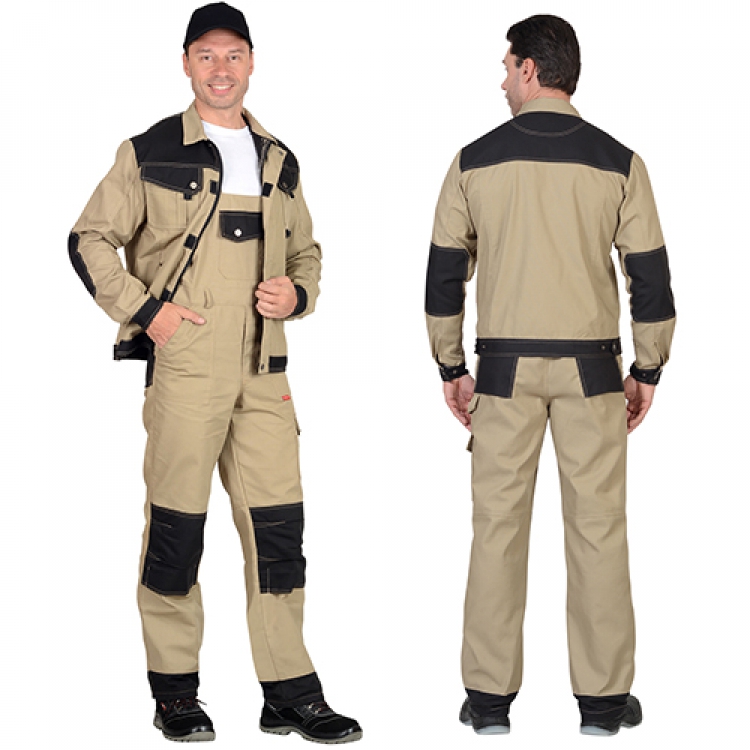 • Костюм Вест-Ворк песочный с черным, куртка укороченная, полукомбинезон