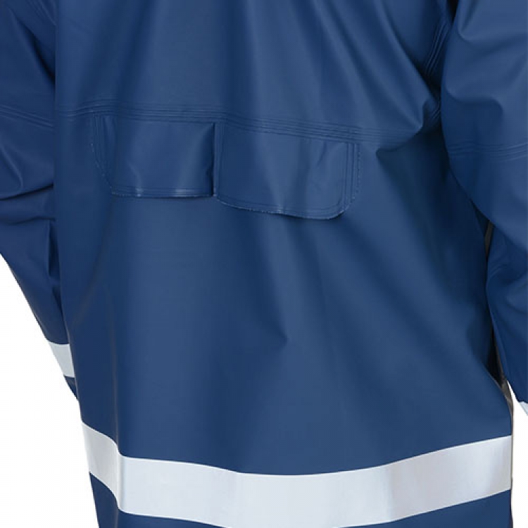 - Куртка имеет свободный крой. Центральная бортовая планка закрывается кнопками. Боковые карманы защищены от влаги клапанами. Капюшон имеет удобную глубину даже для надевания на каску. Для улучшенного воздухообмена на спине и в подмышечных впадинах созданы вентиляционные отверстия. Рукава по низу закрепляются кнопками.
