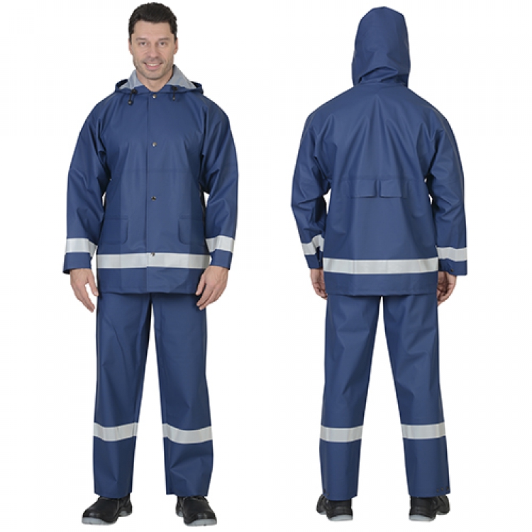 - Для обозначения сигнальной видимости костюм оснащен светоотражающими полосами шириной 5 см. А герметичность усиливают сварные швы.